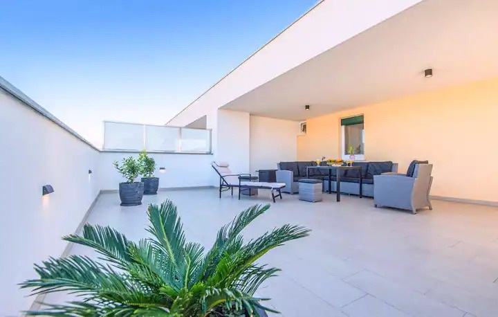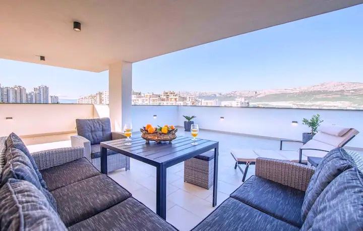 Iznajmljuje se izvrstan smještaj za digitalne nomade, također je odlično mjesto za parove koji žele biti aktivni na odmoru i otkriti centar grada te se zabaviti uživajući na prekrasnim splitskim plažama. Potpuno novi apartman, nalazi se u turističkoj zgradi sa liftom i vlastitim parkirnim mjestom u zatvorenoj garaži. Veliki bonus ovog stana je terasa od 150 m2 sa otvorenim pogledom na cijeli grad. Sam stan je novouređen, potpuno opremljen i moderno uređen. Ima dvije spavaće sobe i sve potrebne sadržaje u blizini…