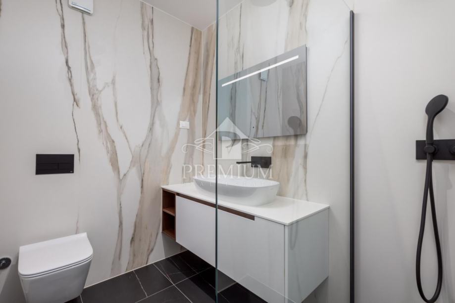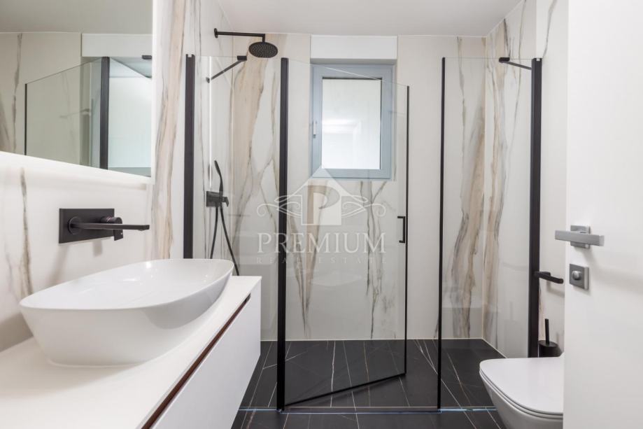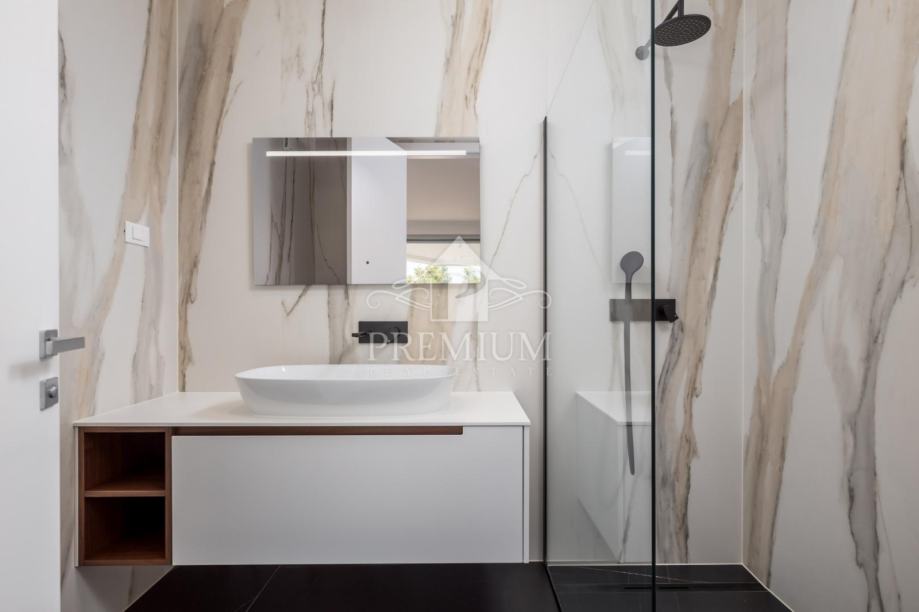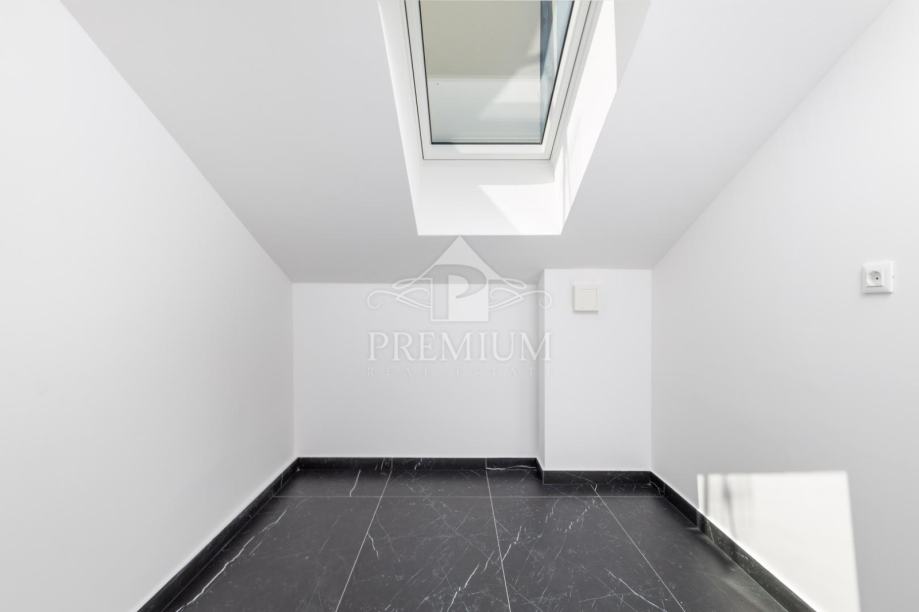 Stan se može podijeliti na dvije odvojene stambene jedinice. U vlasništvu su tri parkirna mjesta u garaži površine 12,68 m2, 12,29 m2, 13,13 m2,te dva spremišta površine 2,16 m2 i 3,60 m2. Zajednički bazen na korištenje.