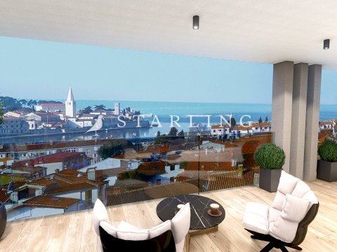 Prodajemo prekrasan Penthouse na vrhunskoj lokaciji u centru Poreča koji se sastoji od velikog dnevnog boravka površine 68 m2, 5 spavaćih soba; svaka spavaća soba ima vlastito kupatilo, prekrasna natkrivena terasa površine 29 m2 s otvorenim pogledom od 180 stupnjeva na more i grad Poreč.
