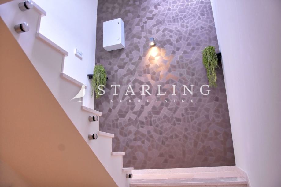 Velika krovna terasa površine od 182 m2 ima nesmetan i otvoren pogled na more i stari grad. Na krovnoj terasi ostavljeni su priključci tako da se može instalirati ljetna kuhinja, tuš i jacuzzi.