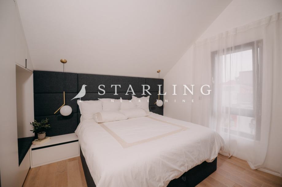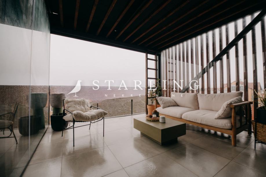 Renomirani arhitektonski studio NFO je zaslužan za arhitekturu zgrade. Stropno grijanje i hlađenje putem dizalica topline, KONE dizalo, VELUX krovni prozori s mogućnošću upravljanja putem aplikacije i s opcijom automatskog zatvaranja pri padalinama, MIELE uređaji, KNAPIĆ kuhinja, PRGIN rasvjeta, dnevni boravak PROSTORIA, blagovaonica NATUZZI, vrata sa skrivenim štokovima TITAN su dio opreme i namještaja stana.