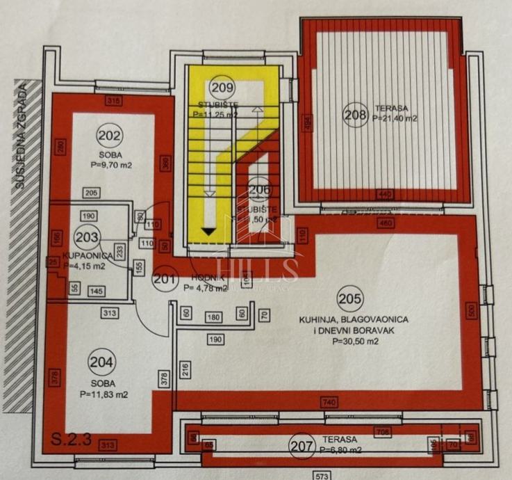 Prodaje se trosoban penthouse površine 95 m2 na 2. i 3. katu zgrade koja ukupno ima 3 kata.