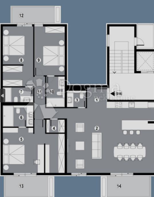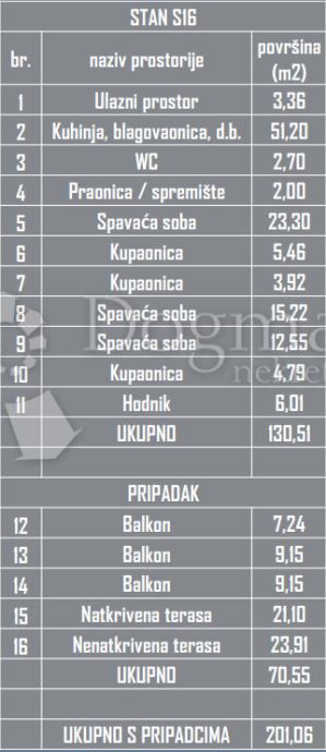 - * Predsoblje, sprema, praonica, prostran dnevni boravak s kuhinjom i blagovaonicom, tri spavaće sobe , 3 kupaonice, wc *