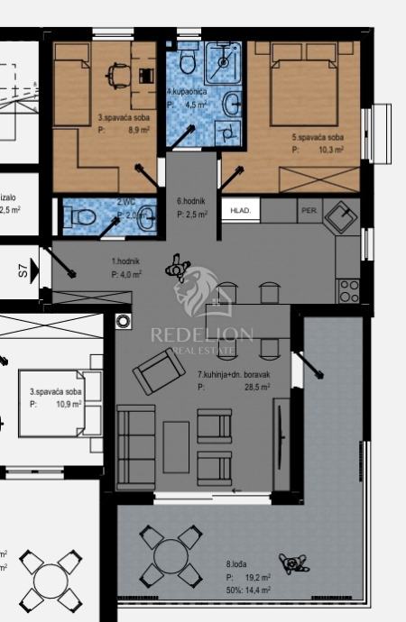 - Lođa: 19,24 m² – savršena za jutarnje doručke ili večernje opuštanje