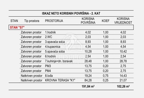 - Impresivna krovna terasa “K1”: 84,28 m² – idealno mjesto za druženja, sunčanje ili uživanje u panoramskom pogledu