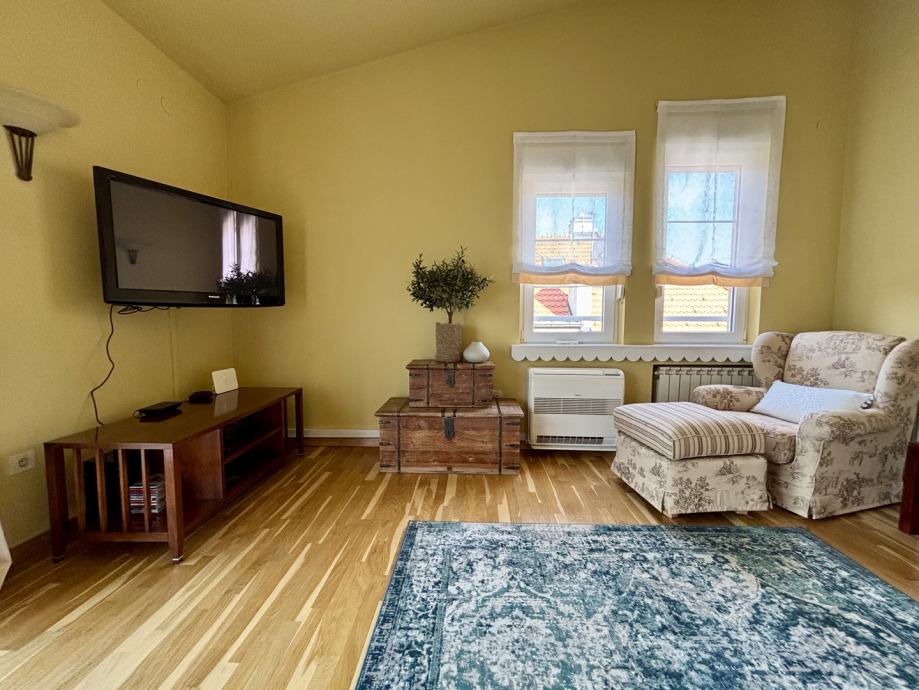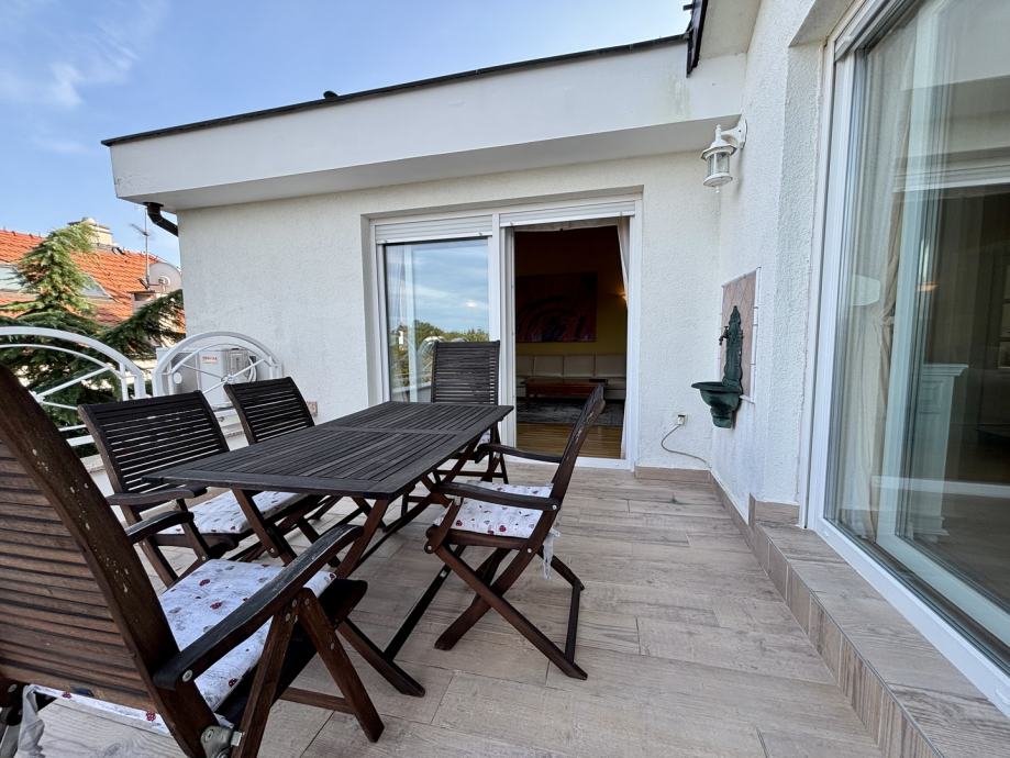 Posebno se izdvajaja prekrasna terasa s koje se pruža predivan pogled na krošnje i zelenilo, te koja nudi zagarantirani mir i privatnost. Dodatna mogućnost pohrane stvari koje se ne koriste često su spremište u podrumu površine cca 7 m2, te čak dvije ostave u tavanu. Protuprovalna vrata doprinose sigurnosti, komforu i kvaliteti svakodnevnog života. Grijanje je plinsko etažno centralno, a za hlađenje tu je klima uređaj.