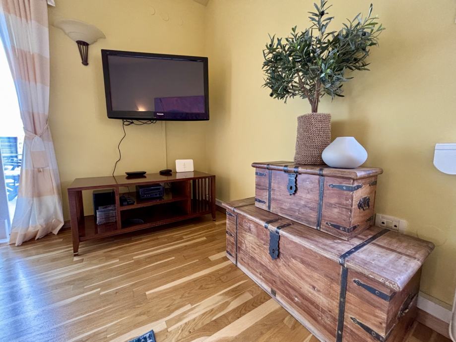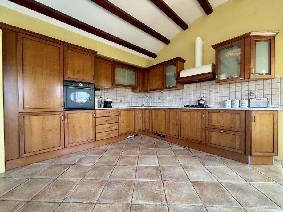 Interijer je opremljen skladnom Scavolini kuhinjom, kao i unikatnim komadima namještaja, čime je omogućen udoban i funkcionalan boravak, pogodan za obitelji, poslovne ljude ili one koji traže kvalitetno opremljen prostor za život i rad.
