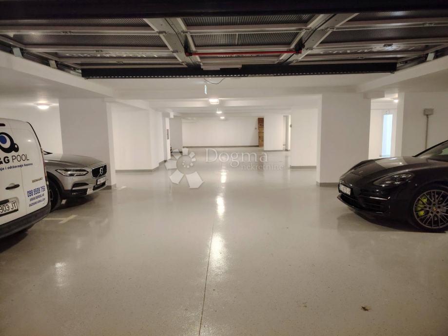 Stan ima u podzemnoj garaži 3 vlastita parkirna mjesta ukupne površine 42 m2 (dovoljna za tri automobila) i spremište s direktnim pristupom do lifta.