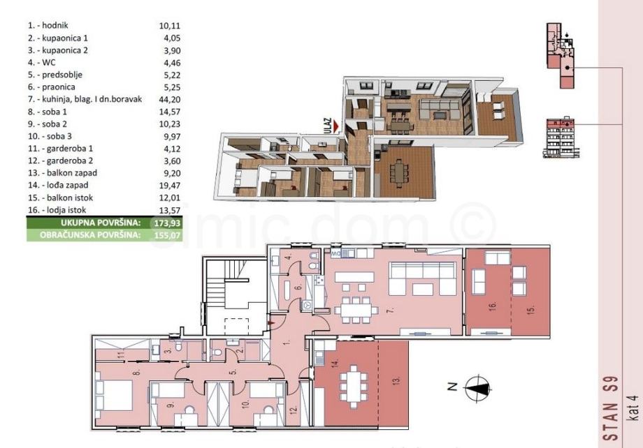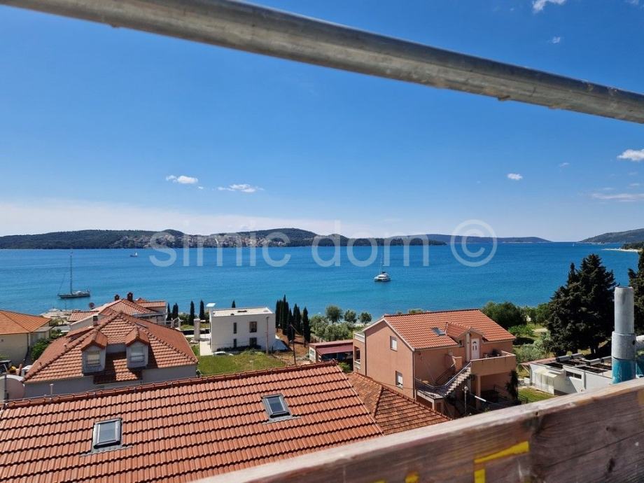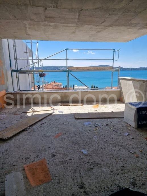 Na prodaju je odličan prostrani penthouse apartman, smješten na 4. katu zgrade sa liftom. Zgrada se nalazi na odličnoj lokaciji, na tek minutu hoda od prelijepe šljunčane plaže te u blizini svih sadržaja, restorana, kafića i trgovina. Apartman ima ukupnu podnu površinu 174m2, od čega je 119m2 unutarnje površine, dok ostalo pripada terasama. Sa uračunatim koeficijentima apartman ima neto površinu 154m2. Sastoji se od hodnika, predsoblja, dvije kupaonice, wc-a, tri spavaće sobe, dvije garderobe, praonice te prostrane kuhinje otvorenog tlocrta sa blagovaonicom i dnevnim boravkom odakle se izlazi na čak dvije velike terase sa prelijepim pogledom na more. Ovaj projekt uključuje vrhunsku opremu, sanitarije i keramiku. Planirano useljenje je kroz jesen 2024. godine. Kupci imaju na raspolaganju garažno mjesto kao i bazen. Budući da stanove gradi tvrtka, kupci nisu obveznici plaćanja poreza na promet nekretnina.