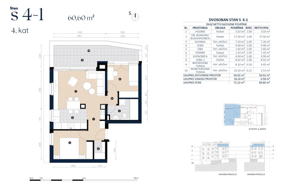 Na uvučenom katu smješten je jedan od dva moderna penthousea stambene površine 60,60 m². Ovaj penthouse osim što nudi kompaktnu i funkcionalnu unutrašnjost za ugodan život, pruža prekrasan pogled na šumu, zelenilo i miran okoliš što dodatno doprinosi atmosferi potpunog opuštanja.