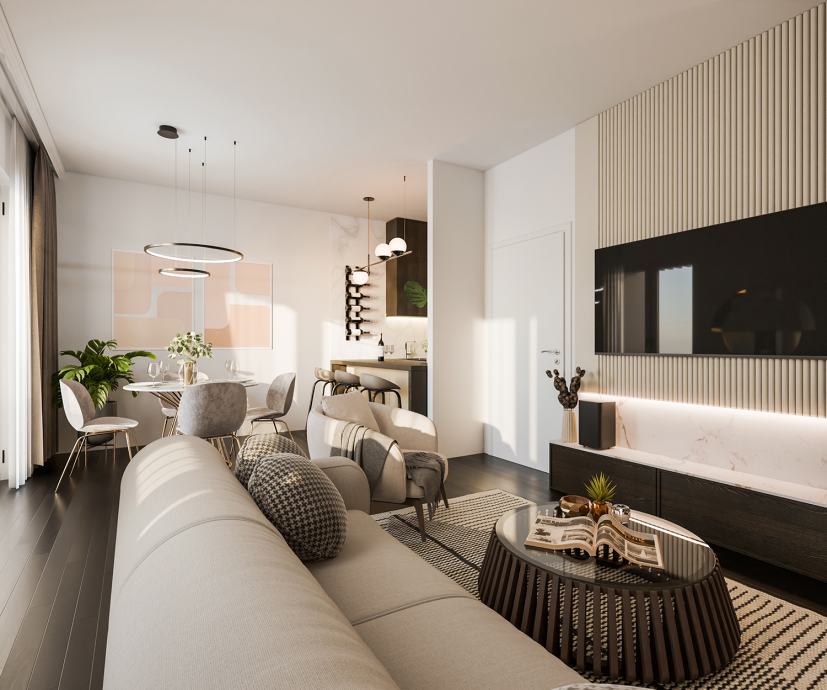 Dnevni boravak i blagovaonica (17,50 m²)– koji nudi udobnost i praktičnost za svakodnevni život s izlazom na prostranu terasu veličine 18 m²