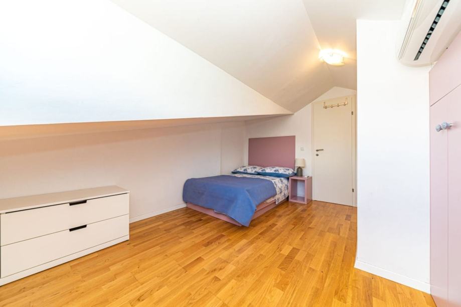 Na prodaju je trosoban dvoetažni penthouse površine 107 m² u atraktivnom dijelu Žnjana. Stan se nalazi u manjoj stambenoj zgradi i pruža savršen spoj komfora, funkcionalnosti i otvorenog pogleda na more.