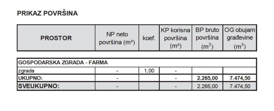 - prostor farme je ukupne površine 3.258 m2