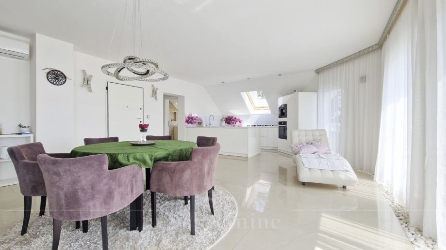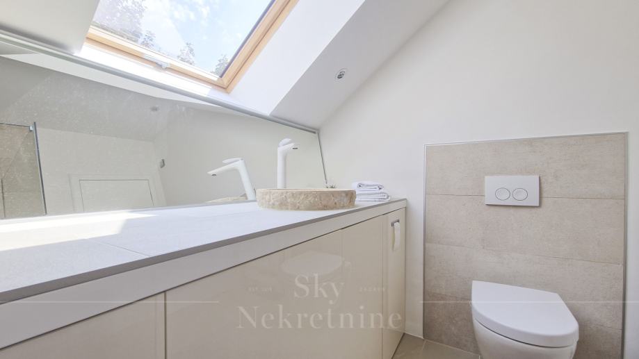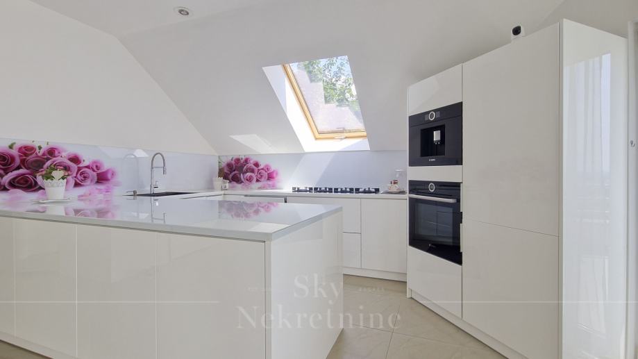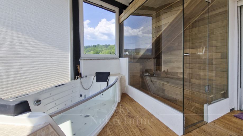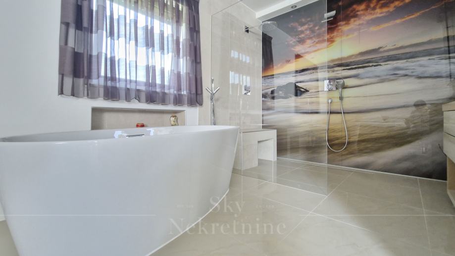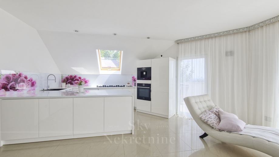 Opremljen je vrhunskim materijalima i Miele uređajima, ima saunu i jacuzzi te smart home sustav.