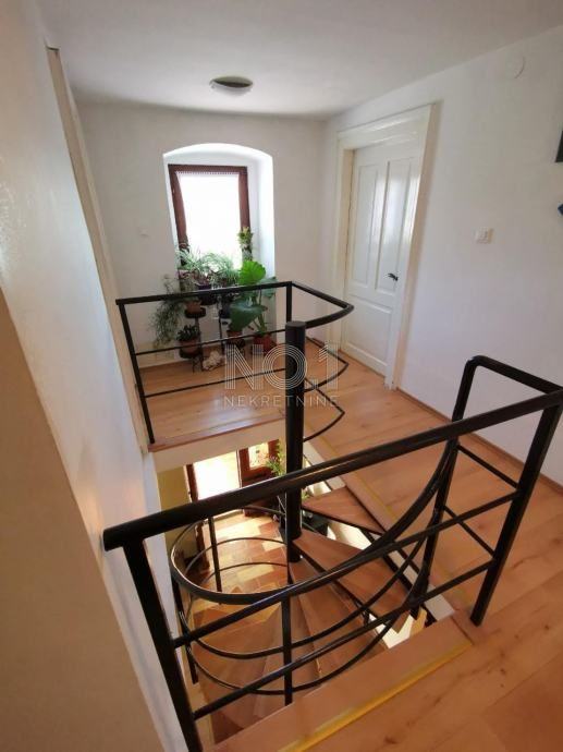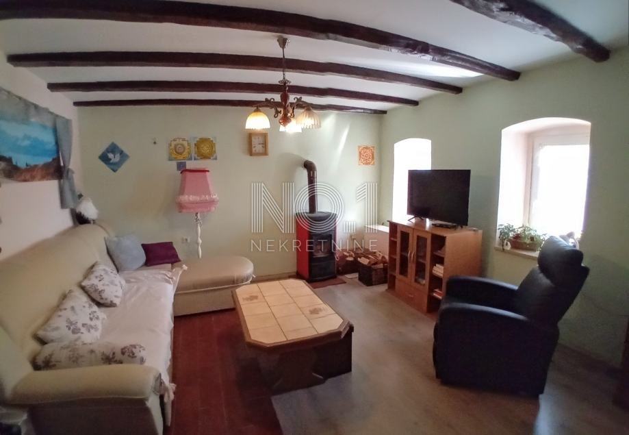 Kuća posjeduje konobu od 30m2 te neuređeno potkrovlje.