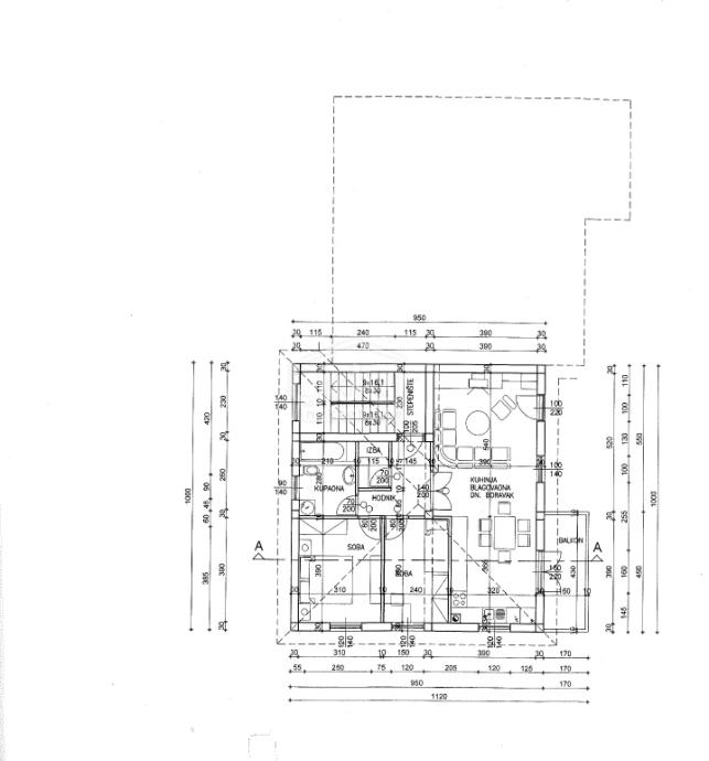 Stan se sastoji od ulaznog hodnika, dnevnog boravka s kuhinjom i blagovaonom, kupaone, izbe i dvije spavaće sobe.