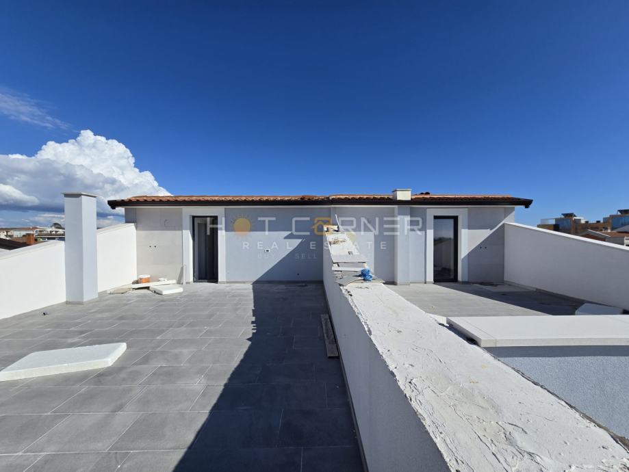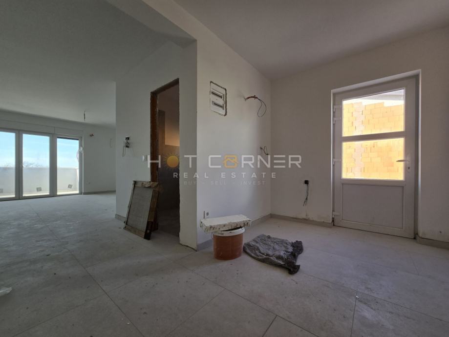 nalazi se otvoreni prostor za druženje, te terasa od 40-ak m2 s koje se proteže