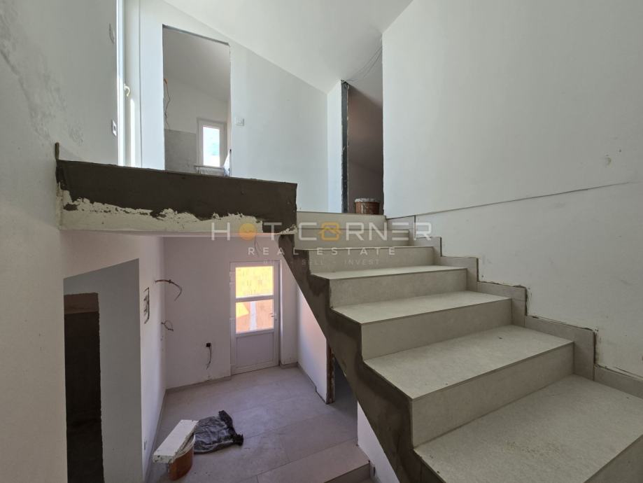 sa kupaonicom, te prostrani dnevni boravak i kuhinja.Na 2 katu ili mansardi