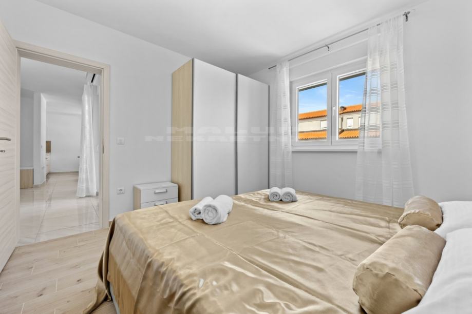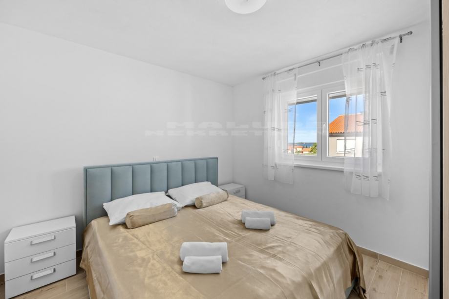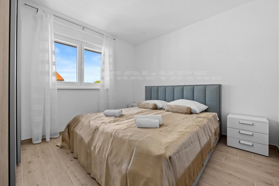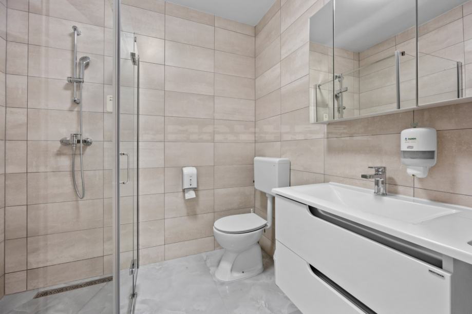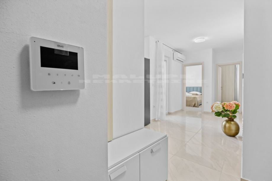 Sastoji se od hodnika, 2 spavaće sobe, kupaonice, dnevnog boravka i kuhinje, lođe i vlastitog parking mjesta ukupne neto kvadrature 64.17 m2