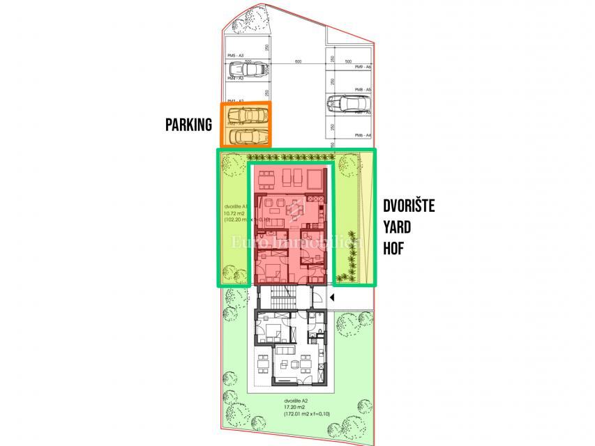 Pripadaju mu i 2 parkirna mjesta koje će imati mogućnost priključka za punjenje električnih automobila, što ga čini čini budućnosti prilagođenom domu.