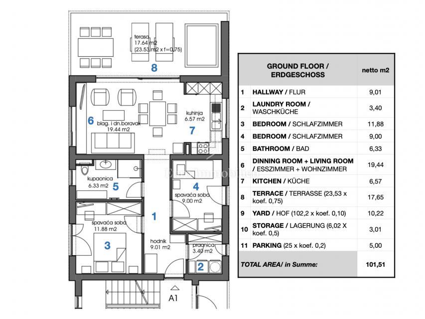 Smješten u novoj zgradi vrhunske kvalitete, koja se trenutno gradi, ovaj stan površine 101,51 m² idealan je za obiteljski život ili kao unosna investicija.