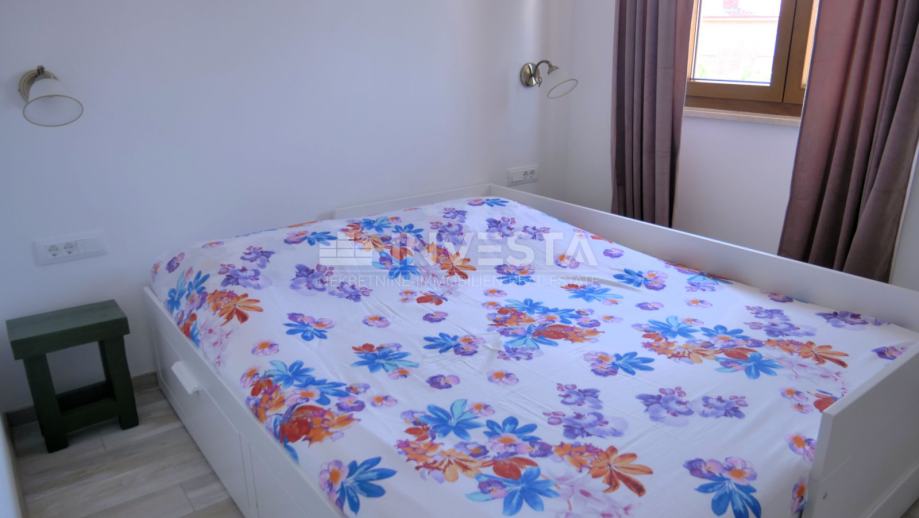 Na katu se nalazi manji hodnik kojim dolazimo u kupaonu, jednu manju spavaću sobu te jednu prostranu spavaću sobu s izlazom na terasu s koje se proteže pogled na more i okolinu.
