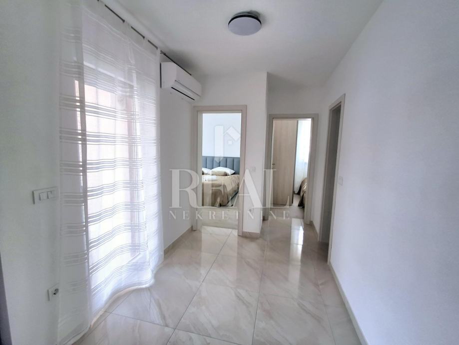 Peroj,na mirnoj lokaciji prodaje se stan u novogradnji na 2. katu, stambene površine 63.59m2.Ima odličan raspored a sastoji od dnevnog boravka sa kuhinjom, blagovaonice ,natkrivene terase, dvije spavaće sobe i kupaonice.Parkirno mjesto je ispred objekta.