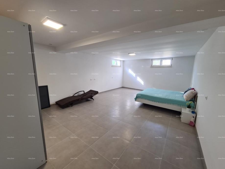 Sastoji se od ulaznog hodnika, dvije spavaće sobe, kupaonice, kuhinje s blagavaonicom te dnevnim boravkom i velikom terasom. Unutarnje stepenice iz dnevnog boravka vode na donju etažu gdje se nalazi velika spavaća soba.
