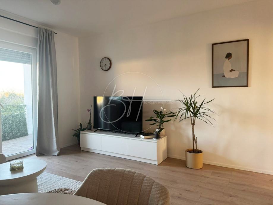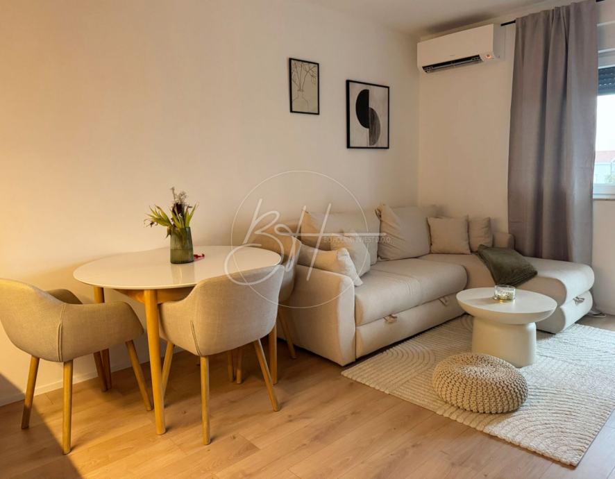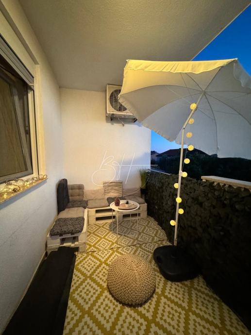 Stan se sastoji od hodnika, spremišta, dvije spavaće sobe, kupaonice, kuhinje povezane s dnevnim boravkom te balkona s pogledom na more. U potpunosti je renoviran ove godine – s novim namještajem i spreman za useljenje bez dodatnih ulaganja.