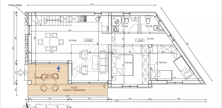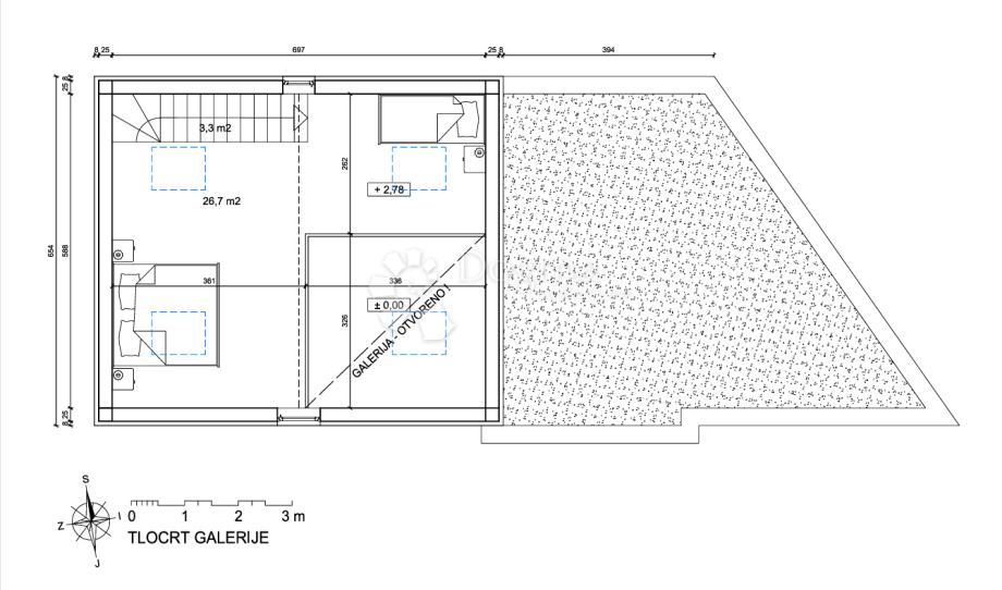 Tlocrtni prikaz dodatno ilustrira potencijal oblikovanja jedinstvene nekretnine, bilo za privatnu upotrebu ili investiciju.