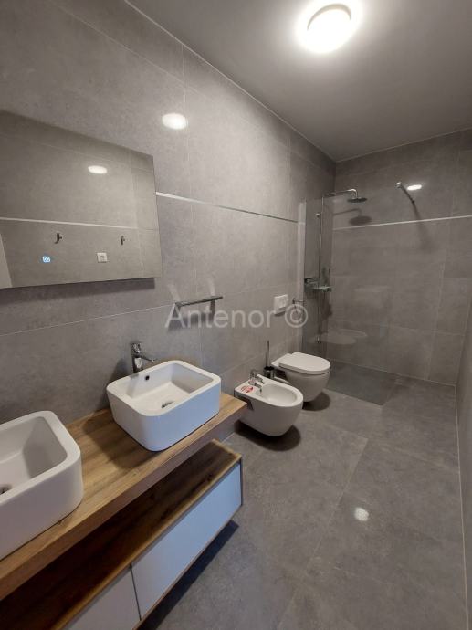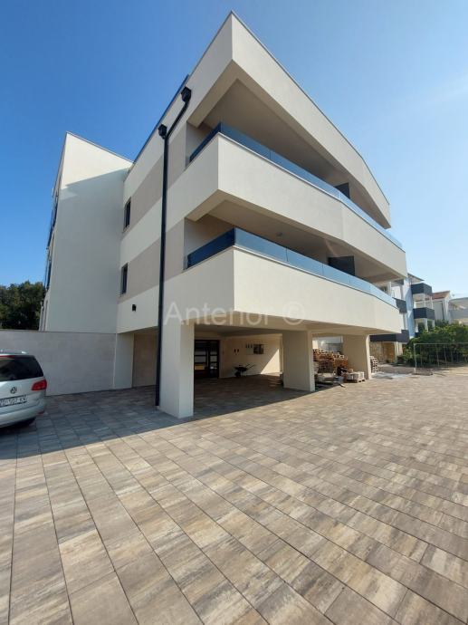 B4 - na 1. katu se nalazi ulaz, soba i kupaonica. Na 2. katu nalazi se stubište, hodnik, dvije spavaće sobe, kupaonica, balkon, predprostor, dnevni boravak i kuhinja. Tlocrtna površina apartmana je 123,63 m2. Izlazom na krovnu terasu pruža se prekrasan pogled na zadarske otoke. Krovna terasa je površine 30 m2 i dijelomično je natkrivena. Na krovnoj terasi postoje priključci struje i vode. Apartmanu pripada spremište površine 4,85 m2 te jedno natkriveno i jedno nenatkriveno parkirno mjesto.