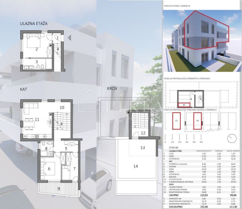 PETRČANE - luksuzni dvoetažni penthouse B4 s panoramskim pogledom na cijeli Zadarski kanal, neto korisne površine 111 m2.