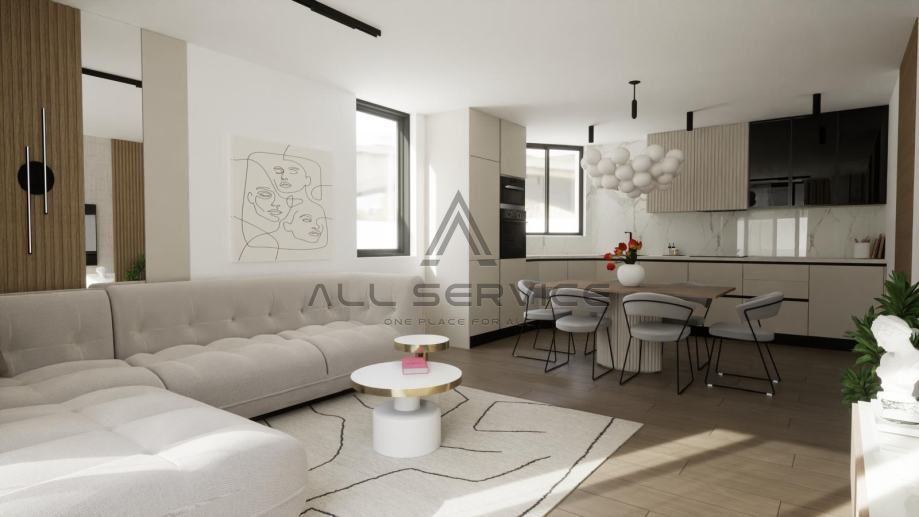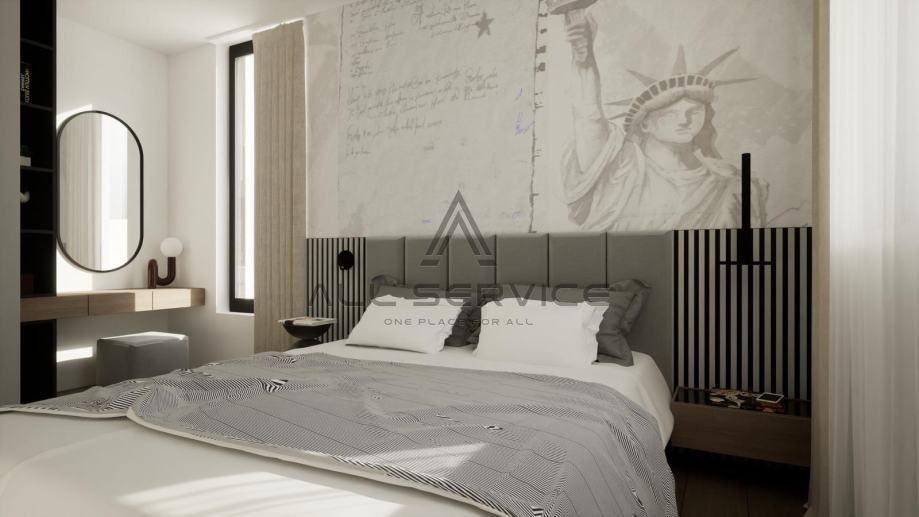 Također, postoji mogućnost namještanja kompletnog stan te krovne terase po cijeni od 1.400,00 eur/m2.