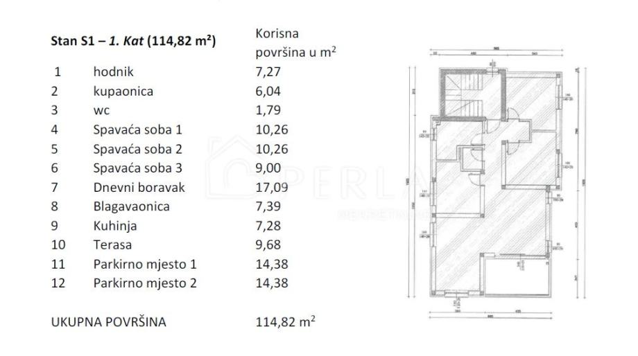 Ukupno: 114,82 m2