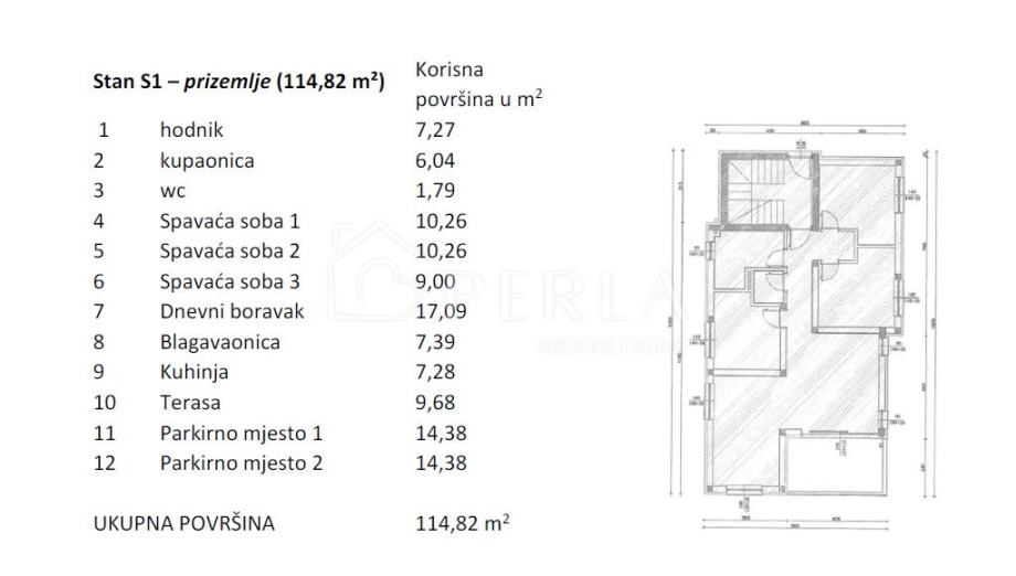 - Parkirno mjesto 1 (bruto 14,38 m2)