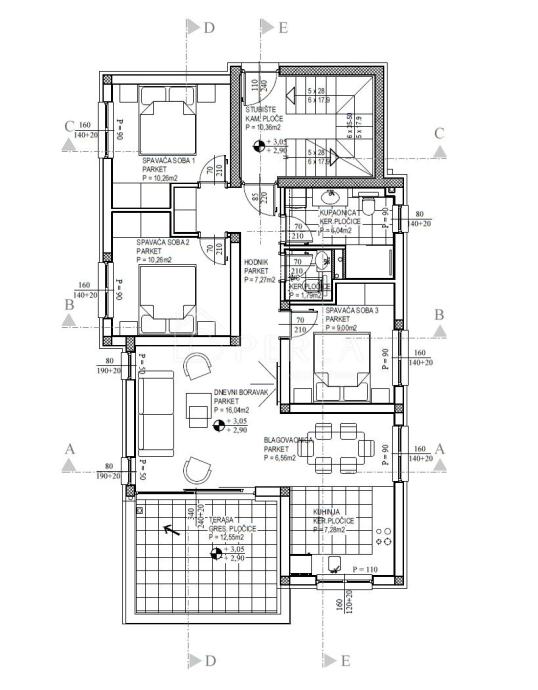 S3 – 2. kat, dvosoban apartman s krovnom terasom, 98 m² – 490.000,00 €
