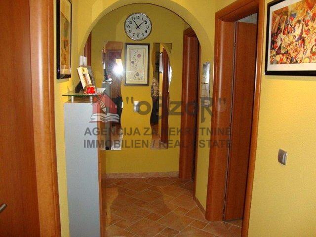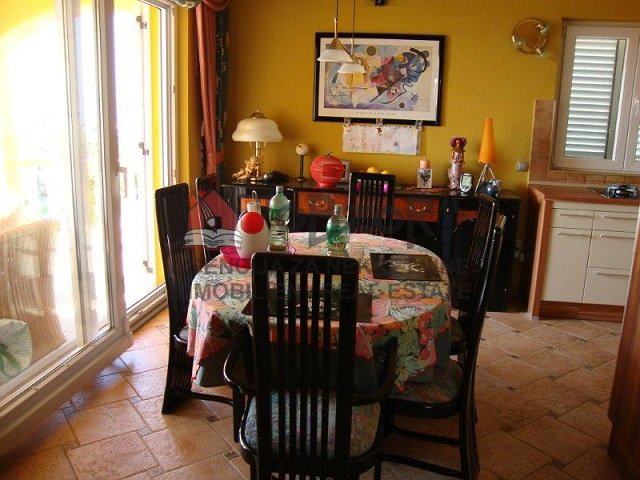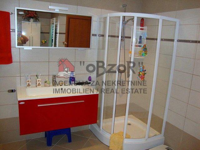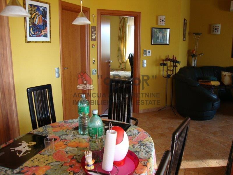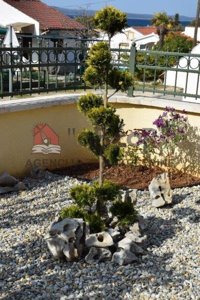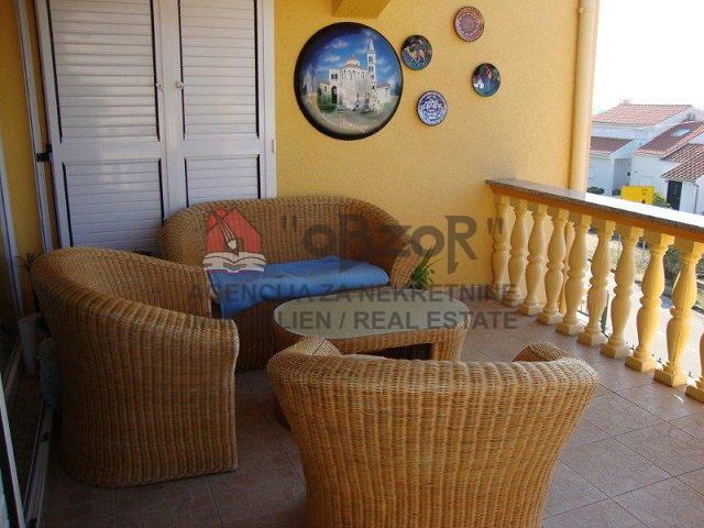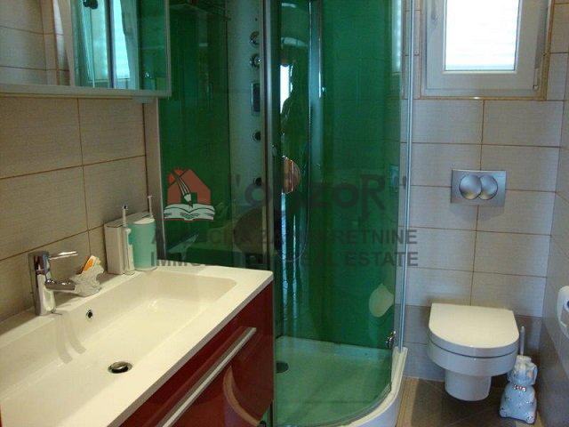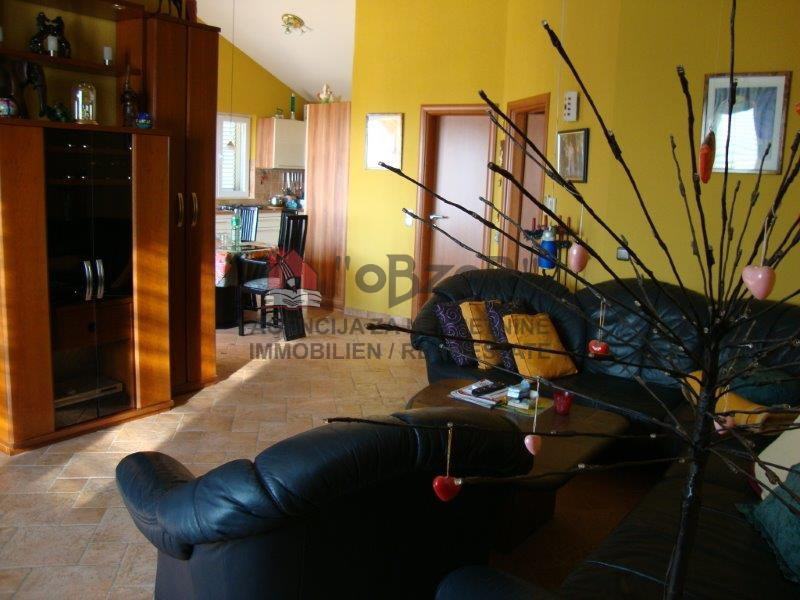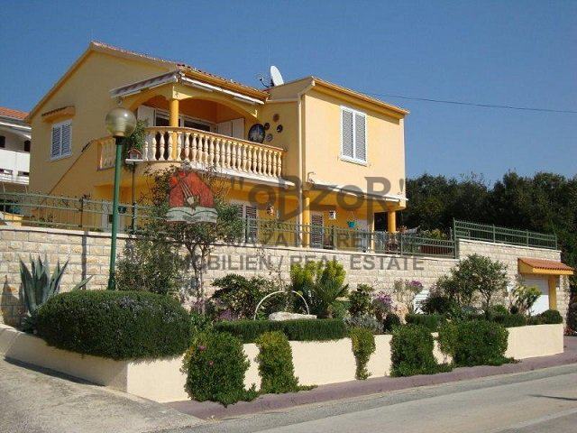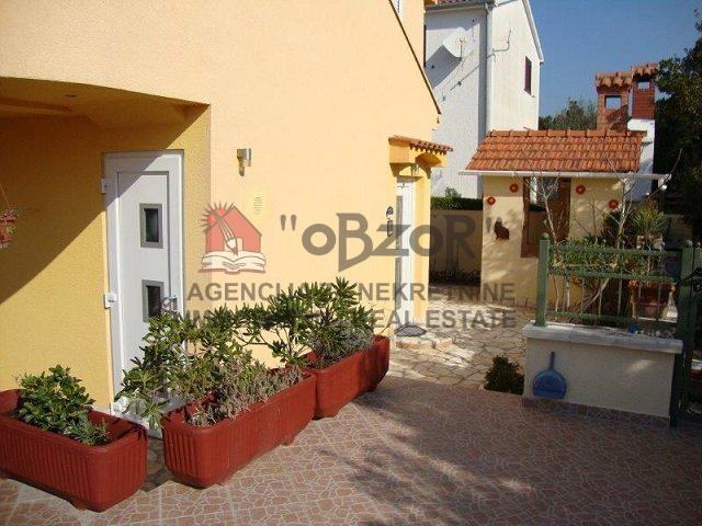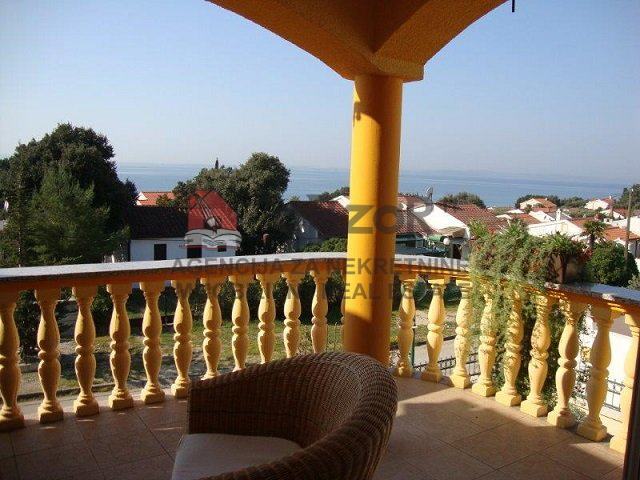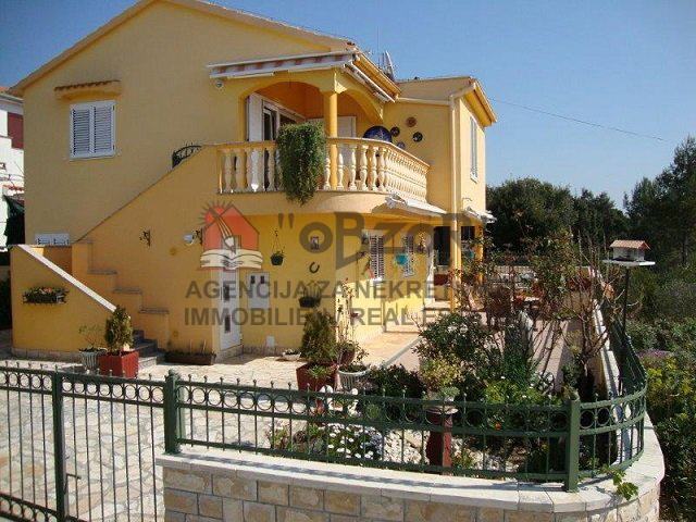 Prodaje se samostojeća kuća-katnica s prekrasnim pogledom na more i otoke. Kuća se sastoji od prizemlja i kata. Prizemlje se sastoji od kuhinje s blagavaonom, dvije spavaće sobe, hodnika, kupatila s toaletom( kutna kada+tuš ), klime i jedne prostorije(praonica) u kojoj je smještena perilica i sušilica rublja. Na katu se nalazi kuhinja s blagavaonom i dnevnim boravkom, jedna spavaća soba, kupatilo s toaletom(tuš kada), dvije klime i natkrivena terasa. Pristup katu je omogućen s unutarnjim i vanjskim stepeništem. Ispod svakog stepeništa se nalaze ostave. Također treba napomenuti da kuća posjeduje garažu s površinom od cca.25m2 , podrum površine cca.18m2 i natkriveni roštilj. Okućnica je uredna i održavana kao i sama katnica. Dvorište je ograđeno kovanom ogradom i popločano benkovačkim kamenom. Unutar dvorišta postoji mogućnost parkinga za pet automobila. Kuća ima termo-fasadu, kvalitetnu unutarnju i vanjsku stolariju, podno grijanje na plin, vanjsku rasvjetu oko cijele kuće, četiri tende, gradsku kanalizaciju, tri klime… Udaljenost od mora cca.120m. Vlasništvo 1/1. Sve dodatne informacije na upit.