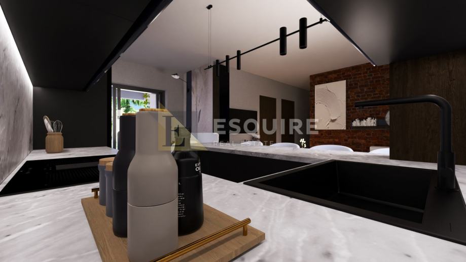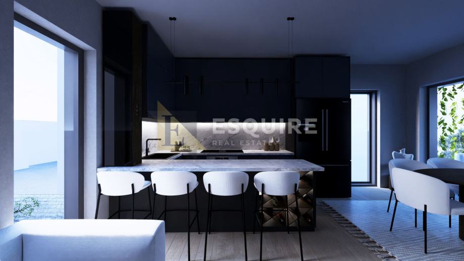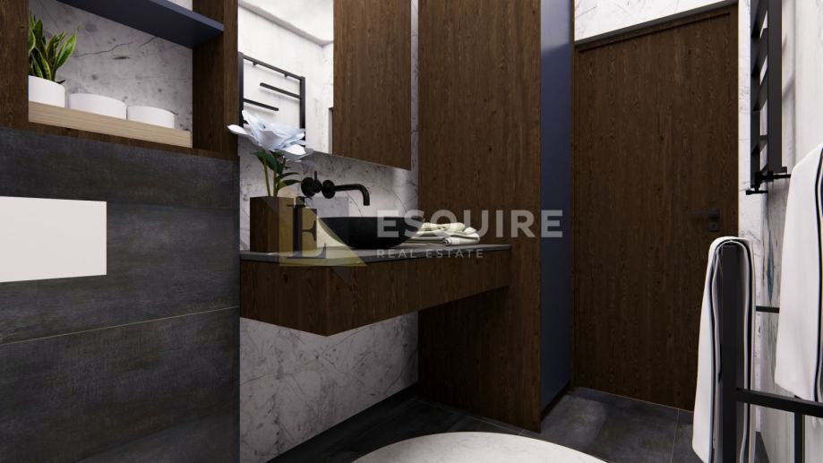 Stan će biti opremljen kvalitetnim materijalima uključujući parket i keramiku prve klase, uz suvremeni estetski i funkcionalni koncept.