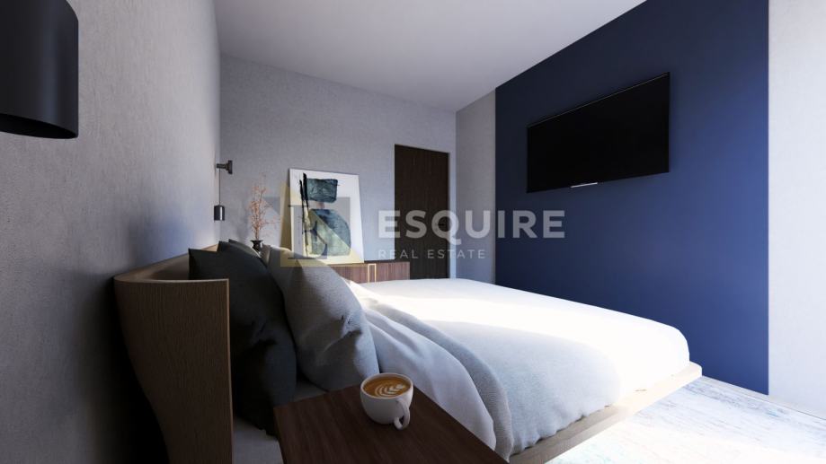 Dvije udobne spavaće sobe pružaju dovoljno prostora za bračne krevete, a za maksimalnu funkcionalnost preporučuje se ugradnja garderobnih ormara po mjeri.