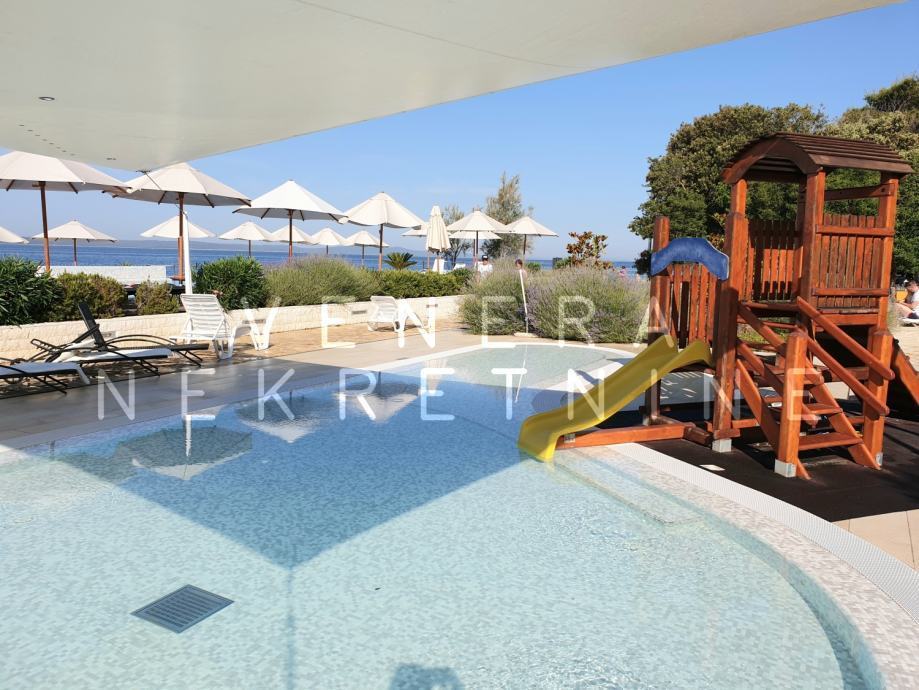 Kupac nekretnine ima benefite kao što su koncesija na plažu, besplatno korištenje ležaljki na plaži, bazen, teretana, sauna, spremište, usluge recepcije 0/24, čišćenja, tehničke službe za bilo kakve popravke, vrtlar, zaštitarska služba 0/24...