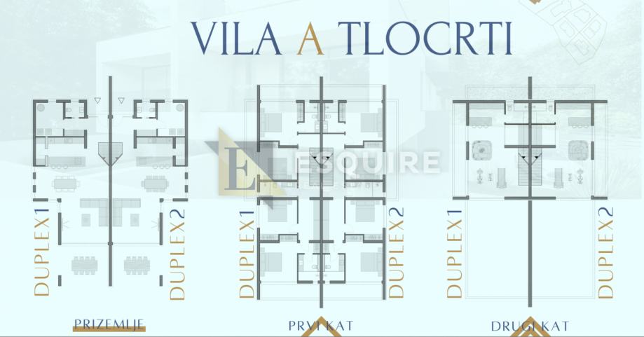 Vila se prostire na tri etaže, koje su osmišljene s naglaskom na funkcionalnost, komfor i luksuz, što je jasno vidljivo i kroz priložene tlocrte.