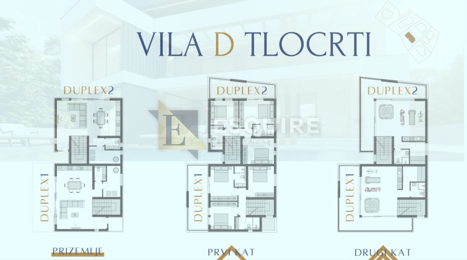 Vila se prostire na tri etaže, koje su osmišljene s naglaskom na funkcionalnost, komfor i luksuz, što je jasno vidljivo i kroz priložene tlocrte.