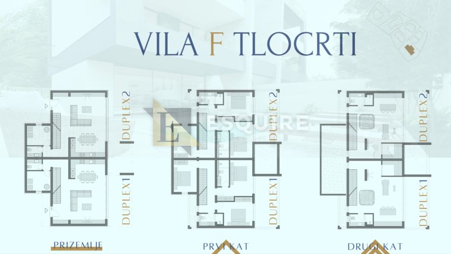Vila se prostire na tri etaže, koje su osmišljene s naglaskom na funkcionalnost, komfor i luksuz, što je jasno vidljivo i kroz priložene tlocrte.