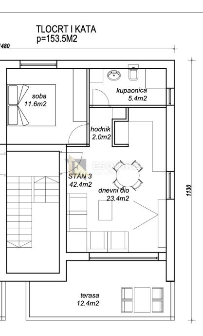 Kuhinje, dnevnog boravka i blagovaonice (23,40 m2)