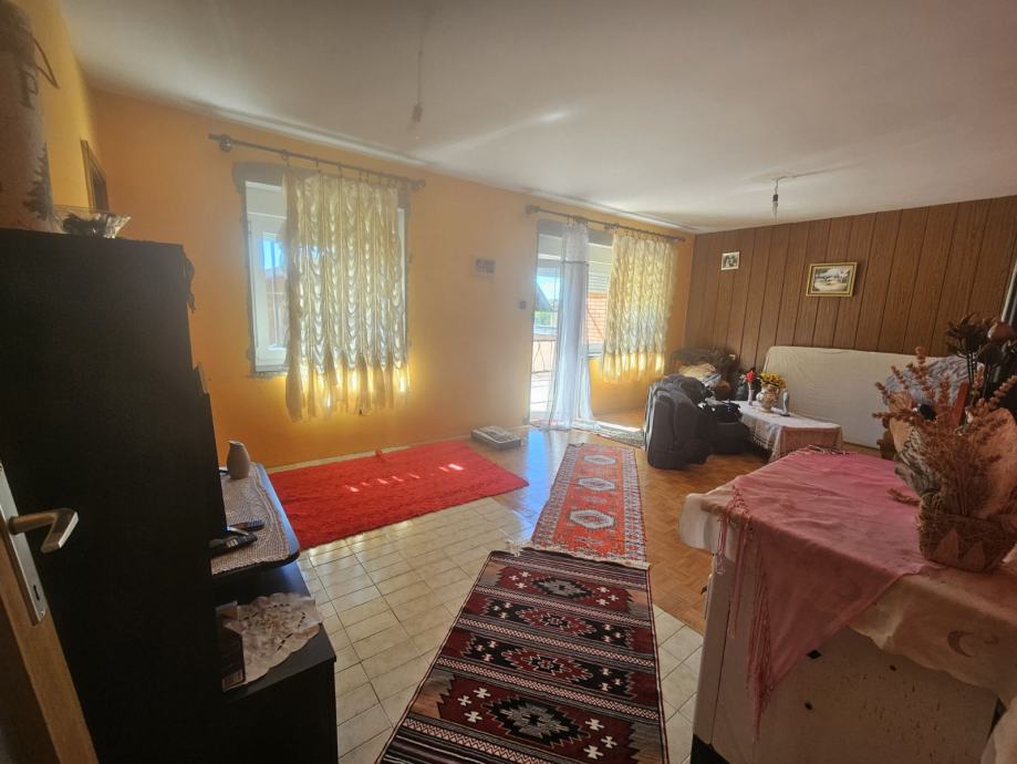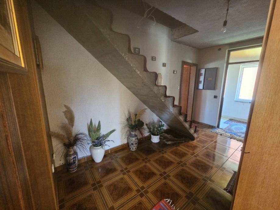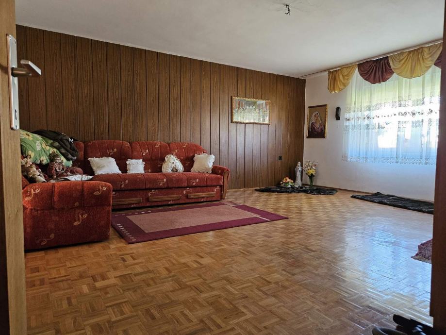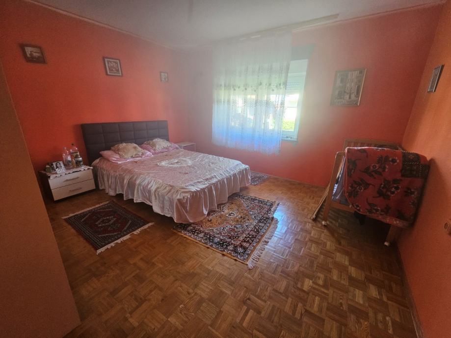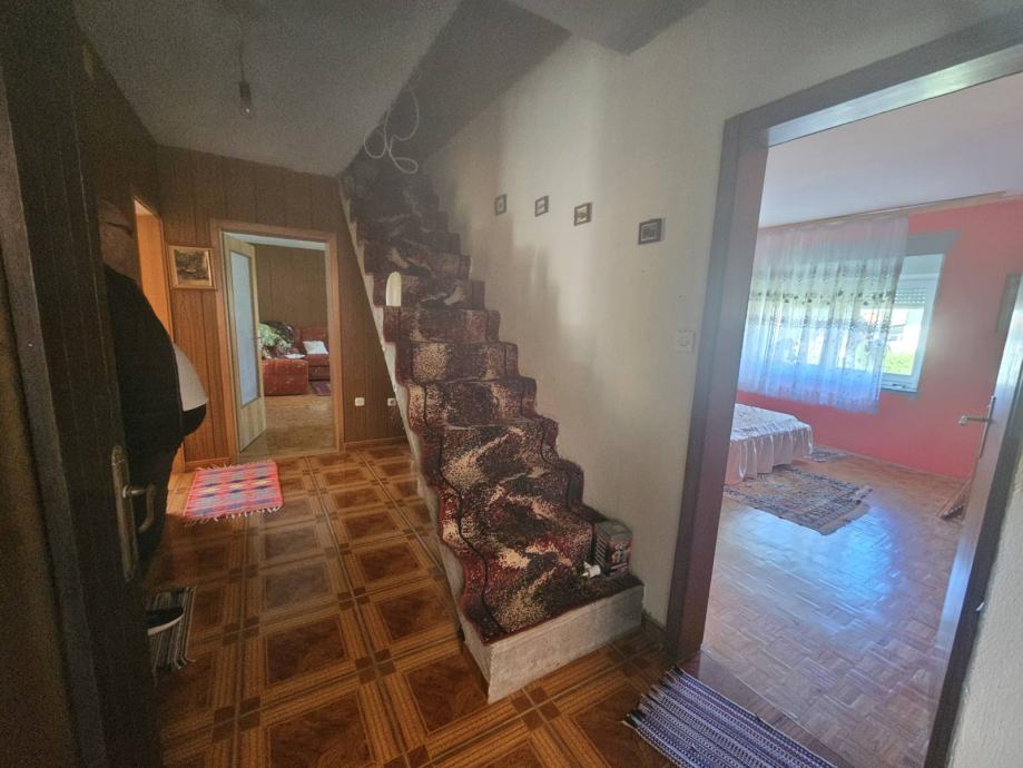 Ulično orijentirana visokoprizemnica građena 1993. godine površine 200m2. Kuća ima dvije etaže visokoprizemlje i potkrovlje. Kuća ima i podrum ispod polovice jedne etaže. Prva etaža visokoprizemlje površine 100m2 sastoji se iz prostranog dnevnog boravka sa blagovaonicom, kuhinje, spavaće sobe, kupaonice, hodnika sa stubištem za potkrovlje i terase. Druga etaža potkrovlje kuće površine 100m2 je nedovršeno i ima mogućnost četiri sobe i kupaonice. Kuća nema uvedeno grijanje, mogućnost spajanja na već postojeću kućnu instalaciju. Kuća ima prostrano dvorište sa kolnim ulazom i parking u dvorištu i ispred kuće.