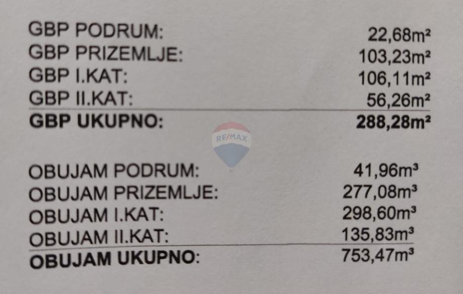 Nekretnina sadrži i podrum površine 22 m2.