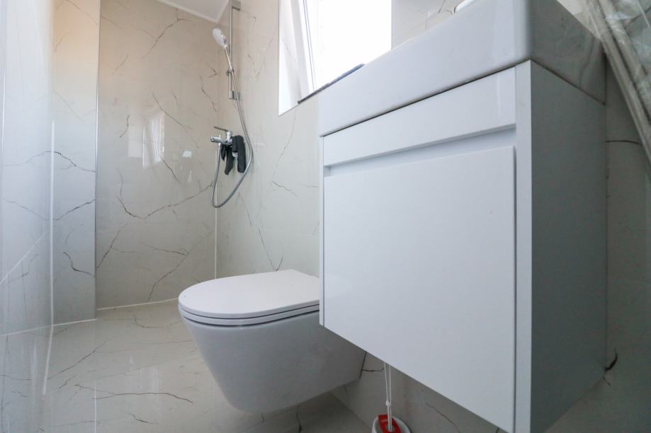 Stan je kvalitetno i moderno namješten, klimatiziran je, s protuprovalnim vratima i odličnom stolarijom.