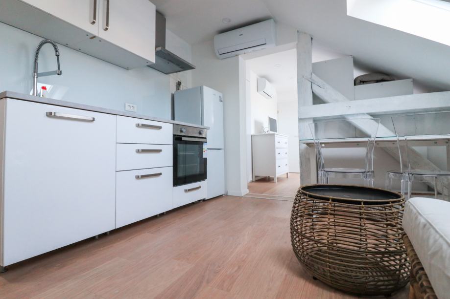 Iznajmljuje se prvi puta 2025. godine adaptiran 1-soban stan, atelje, na odličnoj lokaciji u Petrovoj ulici, na 3., zadnjem katu održavane stambene zgrade bez lifta.