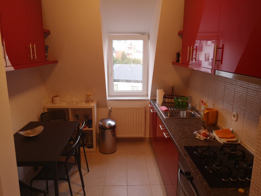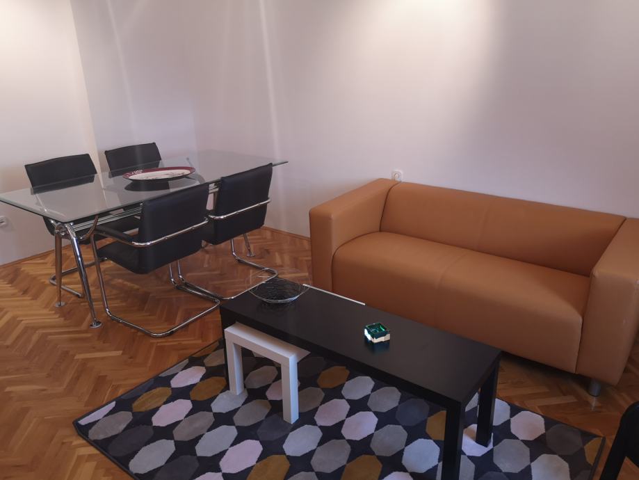 Sastoji se od hodnika, kupaone, kuhinje, wc-a, dnevne sobe i dvije spavaće sobe.