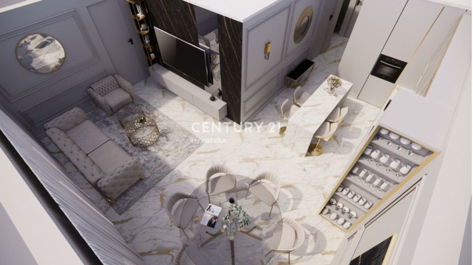 -u ulaznom dijelu imate predvorje iz kojeg se ulazi desno open space kuhinju i boravak te izlaz na balkon-loggiu